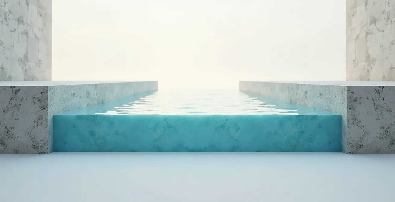 Une piscine n’est pas un objet statique. Elle subit quotidiennement des variations thermiques de 15 à 30°C entre le jour et la nuit, des cycles de pression hydrostatique lors du remplissage et de la vidange partielle, et une exposition continue aux UV et au chlore. Sur une année, ces sollicitations cumulées représentent plus de 500 cycles de contrainte que le matériau doit absorber sans développer de faiblesses structurelles.